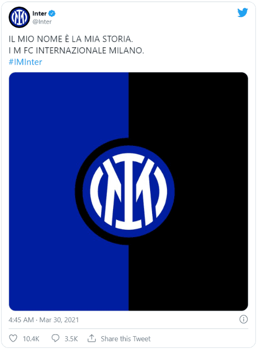 En la presentación, el club jugó con las iniciales IM y el significado que tiene en inglés, que se traduce como “yo soy”. En el tuit que oficializó los cambios, varias personalidades vinculadas al club italiano dejaban la frase “I’M Internazionale Milano”. Lejos de caer bien, los comentarios se llenaron de aficionados del equipo criticando semejante modificación, que claramente no es tan similar a la que se usó históricamente.