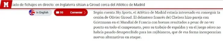 Si bien no se lució con goles, Giroudgeneró interés del elenco Colchonero fruto de justamente el desgaste aportado, trabajo de espaldas al arco rival y fortaleza aérea.