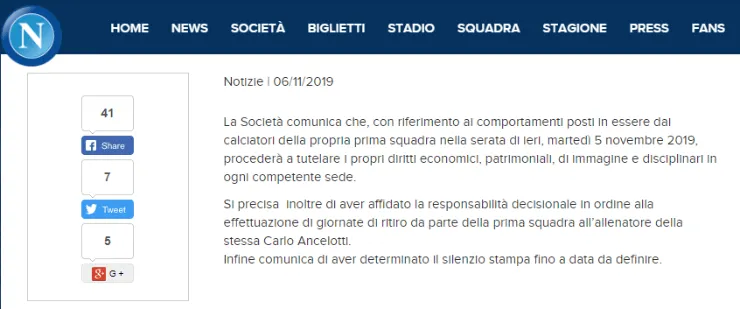 Este miércoles por la mañana, el Napoli emitió un comunicado oficial con respecto a lo sudecido y sentenció que “procederá a proteger sus derechos económicos, patrimoniales, de imagen y disciplinarios en cada oficina competente”.