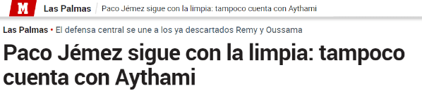 “Ya he hablado con él y me parece un gran profesional.Le he dicho a Aythami que busque acomodo en otro sitio. No queremos que esté sin jugar más tiempo y buscaremos una solución para que arregle su tema contractual. Tendrá todo el cariño y todo el apoyo que merece”, declaró el entrenador.