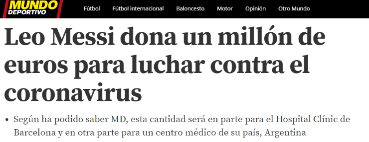 El capitán del Barcelona y de la Selección Argentina habría donado un millón de euros para combatir el coronavirus.
