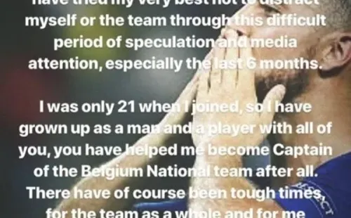 Tras hacerse oficial su traspaso al Real Madrid, el atacante belga subió a sus historias de Instagram una larga carta de despedida.