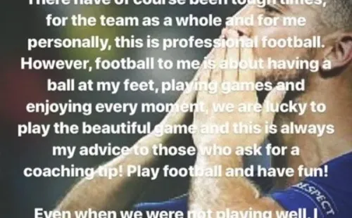 Sólo tenía21 añoscuando me uní, así que he crecido como un hombre y un jugador con todos ustedes, que me han ayudado a convertirse en capitán del equipo nacional deBélgicadespués de todo. Por supuesto, han sido tiempos difíciles, para el equipo en su conjunto y para mí personalmente, esto es fútbol profesional. Sin embargo, el fútbol para mí trata de tener una pelota ea mis pies, jugar y disfrutar de cada momento, ¡tenemos la suerte de jugar el hermoso juego y este es siempre mi consejo para los que piden un consejo de entrenamiento! Juega al fútbol y diviértete!