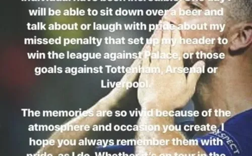 Cuando pienso volver a mis momentos especiales en una camiseta delChelsea, hay tantos, tenemos la suerte de ganar muchos más juegos de los que hemos perdido. Los que me conocen entienden que no soy yo para enumerar lo que he ganado, todo lo que puedo decir es cada uno y cada premio tanto como equipo como como individuo han sido increíbles. Un día voy a ser capaz de sentarse con una cerveza y hablar o reír con orgullo acerca de mi pena perdida que puso mi cabeza para ganar laLigacontra elPalace, o esos goles contra el Tottenham, Arsenal o Liverpool.