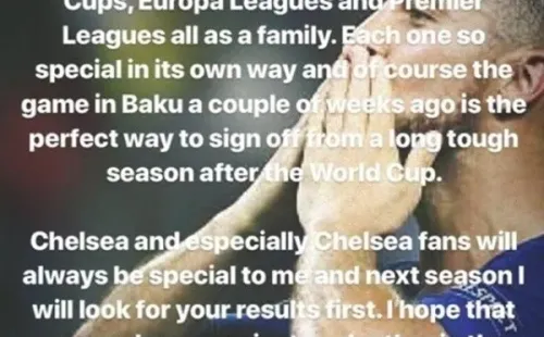 ElChelseay especialmente los fans delChelseasiempre serán especiales para mí y la próxima temporada voy a buscar tus resultados primero. Espero que estemos dibujados el uno contra el otro en laChampionsla próxima temporada y cada temporada para que podamos encontrarnos de nuevo.