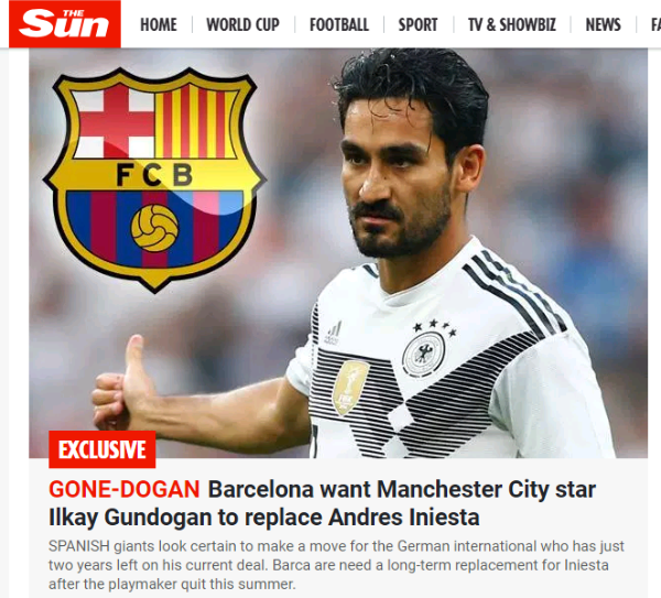 Sin embargo, en las últimas horas, el medio inglésThe Sunha revelado cuál es el jugador que prenden desde España para sustituir a Iniesta:Ilkay Gündogan.