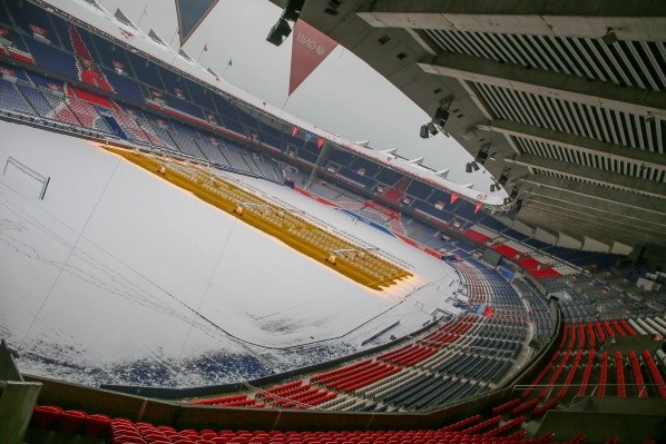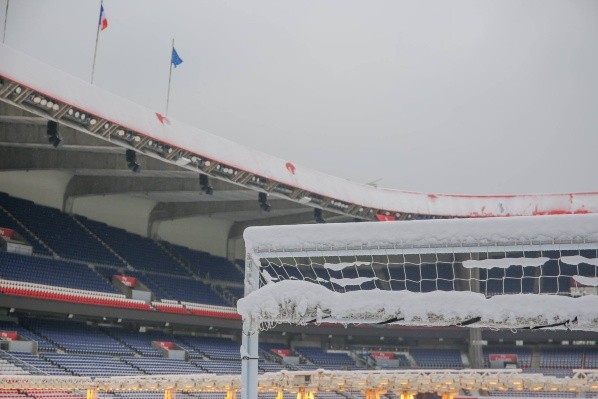 El estadio del PSG quedó completamente cubierto de blanco, después de una intensa nevada que azotó a París, en imágenes que difundió oficialmente el club francés.