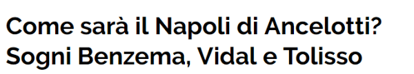 En una lista donde aparecen jugadores de renombre como David Luizy Corentin Tolisso, Ancelotti habría apuntado a dos nombres que hoy parecen estar lejos de la chequera del Napoli:Karim BenzemayArturo Vidal.