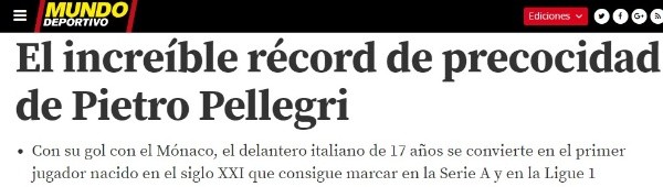 PietroPellegri comienza a surgir. Es muy joven, tiene tan solo 17 años. Pero sus goles demuestran que quiere estar en la historia grande del fútbol, a nivel mundial.