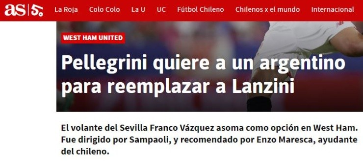 Fruto de esto y ante la necesidad de un reemplazante, el argentino Franco Vázquez, que actualmente juega en el Sevilla de España,surgió como una de las alternativas para suplantar a Lanzini.