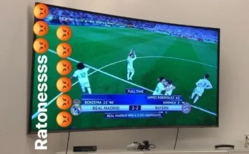 En las redes, en un penal no cobrado ante una mano de Marcelopuso “otra vez, penal mierda”.Luego, criticó con toda a los jugadores Merengues:“Ratones”.