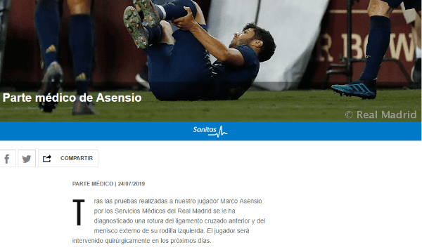 A través del mismo comunicado en el que se informó el parte médico, Real Madrid dio a conocer que Asensio será operado en los próximos días.