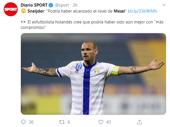“Tengo que ser honesto conmigo mismo. Si hubiera estado comprometido al 100%,me habrían recordado al nivel de Messi y Cristiano. Estoy seguro de eso”, expresó Sneijder, muy seguro de su talento pero no así de su compromiso.