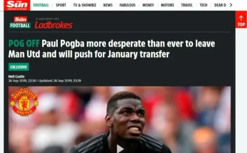 Según The Sun, Paul Pogba estaría “desesperado” por irse de los diablos rojos en enero. El francés no renovaría su contrato que se vence en 2021.