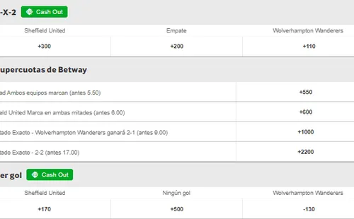 Ahora, ante Sheffield United buscarán recuperar el sitial este miércoles 8, a partir de las 12:00 hrs (tiempo del centro de México). Y con betway te contamos que el favorito para ganar es el Wolverhampton, que paga +110 en los momios, en desmedro de los +300 del Sheffield. Ahora, si crees que termina en empate, paga +200.