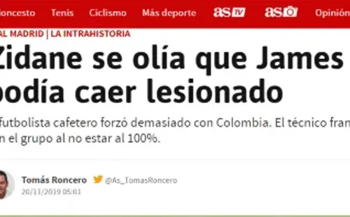 “Zidane se lo olía. Muchos estábamossorprendidos(me incluyo yo en ese grupo de escépticos) por el hecho de ver queJamesse pasó diez días yendo algimnasio de Valdebebas(por allícoincidía conBale) y que en ningún caso se ejercitaba con el grupo. Lawebdel club llegó a decir un par de días que se habíaentrenado en solitario…”, dice Roncero.