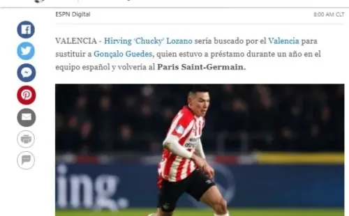 Hoy el turno fue el del Valencia español. Según reseñó Cadena Ser, el cuadro Ché habría preguntado por el mexicano surgido desde el Pachuca y el polivalente colombiano Santiago Arias, quien le ganó a Lozano el pulso por ser el jugador más valioso de la Eredivisie holandesa.
