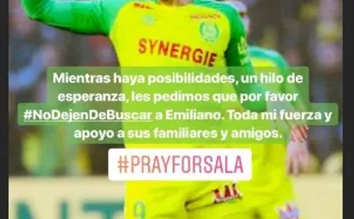 “Mientras haya posibilidades, un hilo de esperanza, les pedimos que por favor #NoDejenDeBuscar a Emiliano. Toda mi fuerza y apoyo a sus familiares y amigos”, escribió La Pulga, adjuntando una foto del delantero argentino que conmocionó al mundo entero.