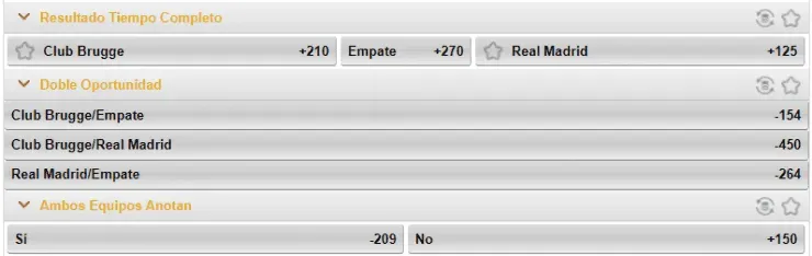 Nuestros amigos de Caliente.mx analizaron también este juego, y anticipan que Real Madrid se quedará con el triunfo. En los momios, paga +125. Si piensas que terminará en empate, paga +270. Si eres de quienes piensa que termina con triunfo de Brujas, paga +210.