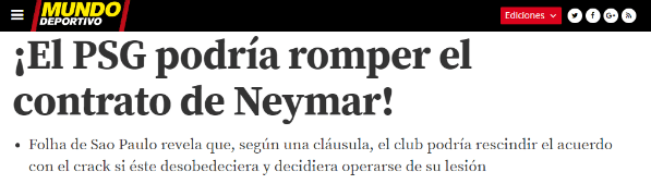 No creemos en nada que esto sea posible. Pero, como ustedes saben, nosotros también creíamos que era imposible que Ney cambie al Barcelona por el PSG y ya saben cómo terminó la historia…