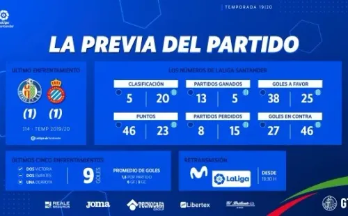 La jornada 29 de La Liga de Españacontinúa este martes con el duelo entre Getafey Espanyol.