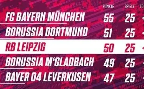 Leipzig es uno de los equipos más destacados del torneo. Actualmente marcha tercero con 50 puntos y buscará acercarse al líder, Bayern Múnich, que acumula 55.