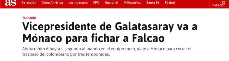 Por si fuera poco, el medio turco Sporxasegura que el vicepresidente del Galatasaray viajó en estas horas al Principado para negociar por la salida del delantero.