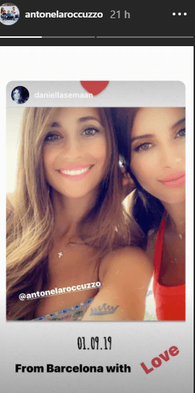 Esta vez, el encuentro con el Súper-Trio que conforma junto a Antonela Roccuzzo y Sofía Balbi tuvo lugar en Barcelona.