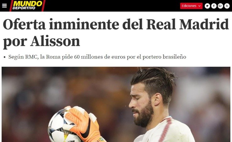 Así, el elenco Merengue tendría en carpeta a varios porteros con los cuales quiere terminar de completar. A Alisson se suman los intereses del equipo español porDavid de Gea (Manchester United),Thibaut Courtois (Chelsea) y Jan Oblak(Atlético de Madrid).