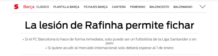 El jugador que intente fichar el equipoculédebe pertenecer al mercado español o encontrarse libre, según informóSport.¡Fuerza, crack!