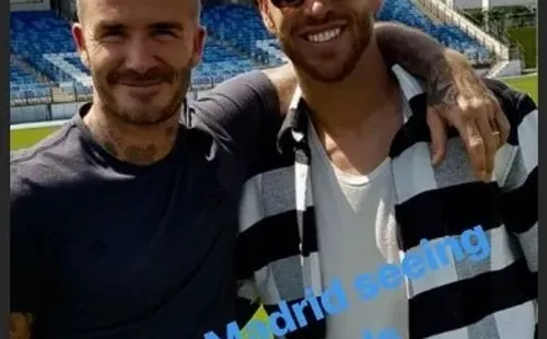 David Beckhamseguirá por siempre rondando por el mundo del fútbol, visitando viejos amigos y rivales en diferentes partes del planeta tierra. Esta vez fue Sergio Ramos el que lo recibió con los brazos abiertos en el entrenamiento del Real Madrid.