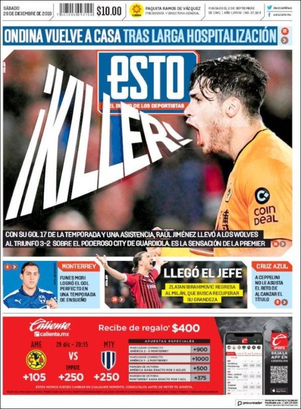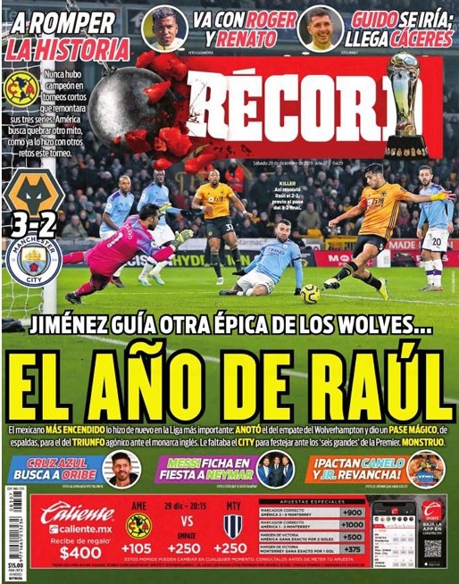 Nuevamente, Raúl Jiménez fue clave en una victoria de Wolverhampton. En esta oportunidad, nada menos que ante un monstruo de la Premier League: Manchester City. De la mano del mexicano (un gol y una asistencia), los Lobos se impusieron por 3-2, luego de ir 2-0 abajo, y obtuvieron un triunfo histórico. Aquí, las portadas.