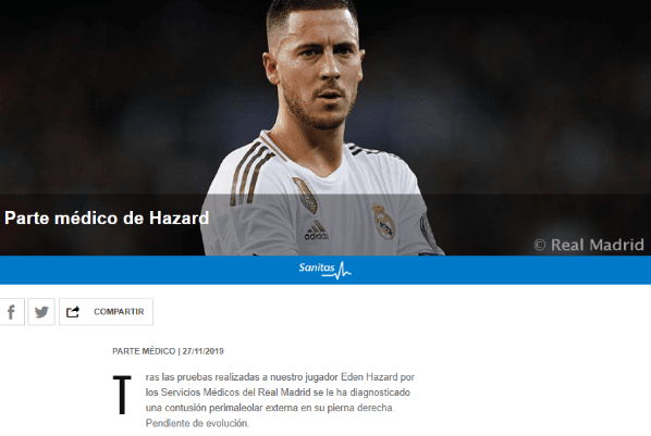 Lo que sufrió Hazard fue una contusión perimaleolar externa en su pierna derecha, que lo dejará en evaluación.