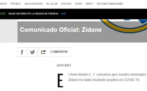 Exteriorizando que el DT oriundo de Francia dio positivo por coronavirus, el conjunto Merengue manifestó: “El Real Madrid C. F. comunica que nuestro entrenador Zinedine Zidane ha dado resultado positivo en COVID-19“. Aunque no fue detallado en el comunicado, Zizou deberá aislarse y dejar a su Cuerpo Técnico al mando del primer equipo a la espera de poder recuperarse.