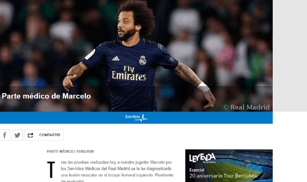 Pero también Marcelo será baja, ya que sufrióuna lesión muscular en el bíceps femoral izquierdo.