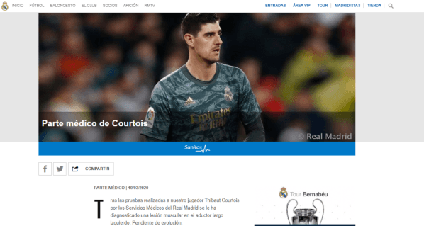 Thibaut Courtois, titular indiscutido en la portería desde que dejó el club Keylor Navas, sufrió una lesión muscularen el aductor largo izquierdo y por esta razón no llegaría a la revancha ante el City.