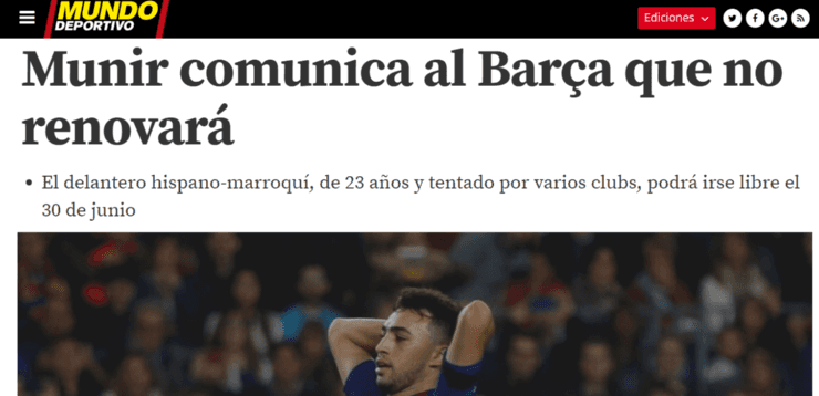 Se trata deMunir El Haddadi, delantero surgido deLa Masíaque tras varias cesiones retornó al equipo que lo vio nacer.