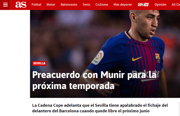 AS yCadenaCopeaseguran que el futbolista ya tiene un precontrato con el Sevilla, club al que estuvo cerca de llegar en junio del 2018. ¡Tachen el primero!