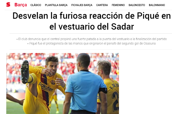 Sin embargo, fuentes que consultó el diario Sport en Navarra confirmaron que, minutos antes de esas declaraciones, Piqué tuvo un ataque de furia en el vestuario culé.