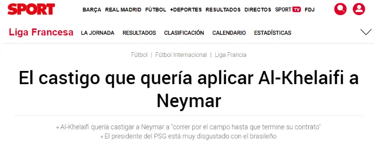 Según reportóSport, el magnate Nasser Al-Khelaïfi, presidente delParís Saint-Germain, estaría completamente disgustado con la actitud tomada por Neymar a la hora de salir de la institución.