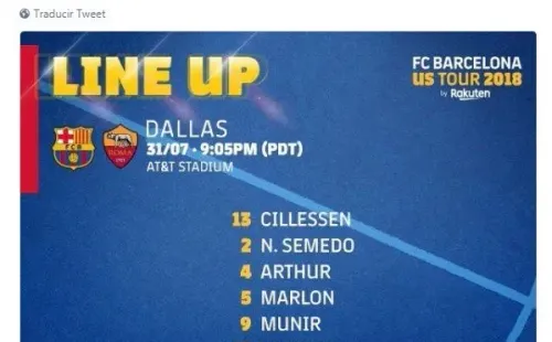 En su cuenta de Twitter, Roma publicó la imagen del Barcelona con la formación titular, donde figuraba Malcom. Pero el club la subió ¡con el nombre del atacante borrado!