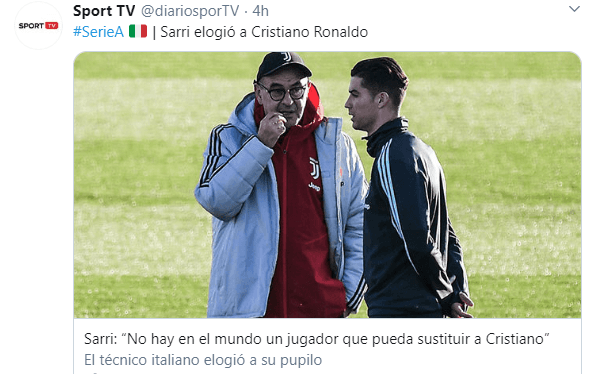 Pero puede que Sarri pierda incluso al portugués para la próxima jornada de Seri A y fue allí que dejó en claro que, cuando Cristiano no está, nadie puede reemplazarlo.