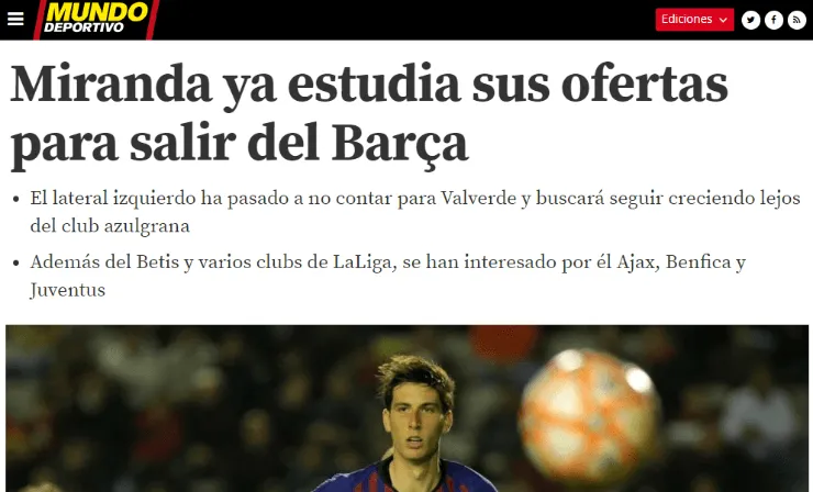 Sin siquiera estar en consideración por parte de Ernesto Valverde para tener un puñado de oportunidades en el verde césped, el lateral saldrá al mercado en busca de un mejor futuro para su carrera.
