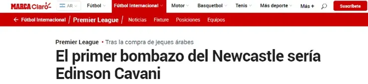 Según reportó Marca este miércoles, uno de los últimos interesados en sumar a su primer equipo a Cavani sería nada más ni nada menos que el Newcastle. Si bien en primera instancia parece algo más que imposible, un dato no menor es que el conjunto de la Premier League fue adquirido hace poco por el Fondo de Inversión Pública de Arabia Saudita.