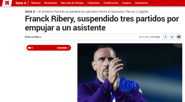 Fue insólito lo que hizo Franck Ribery tras finalizado el partido contra la Lazio. Los locales habían perdido 2 a 1 y el francés fue directamente a agredir a un juez de línea.