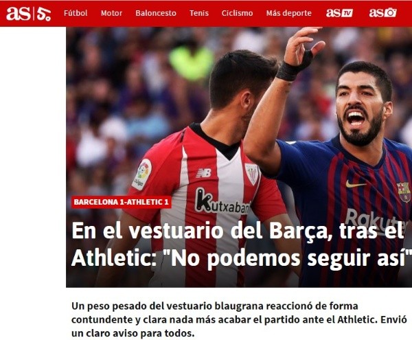 Los jugadores saben que no es el camino y que están a tiempo de reaccionar. Quién se ocupó de recordarlo en el vestuario tras el empate 1-1 frente al AthleticBilbao parece haber sido Luis Suárez.