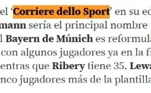 Según publicaCorriere Dello Sport,AntoineGriezmann aparece como opción primordial para los bávaros, quienes no tirarían la casa por la ventana para intentar contratar al delantero francés.