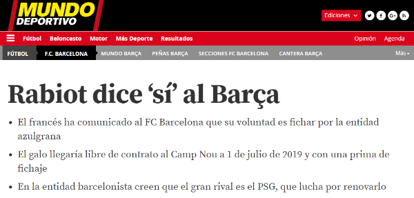 Si bien en su momento sonó que Adrien Rabiotpodía desembarcar en el Barcelona, la historia finalmente terminó en favor del PSG.