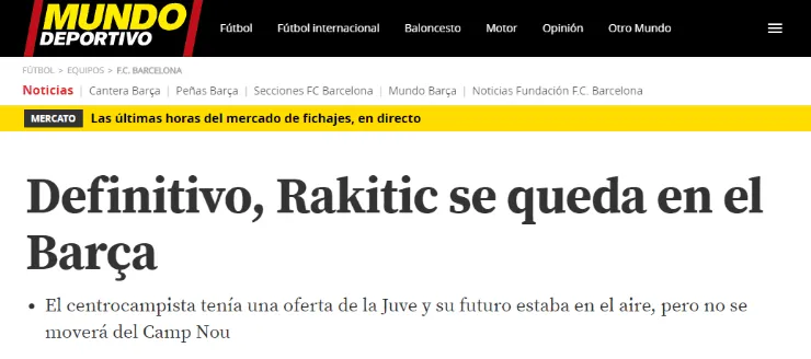 Si bien la gran mayoría de focos estuvieron posicionados en torno al futuro de Neymar y un posible destino vinculado al Barcelona, lo cierto es queIvan Rakitić también tuvo un papel fundamental en el último mercado de traspasos.