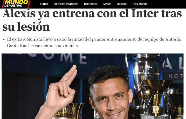 En 16 de octubre, Alexis Sánchez fue operado del tendón del tobillo izquierdo. El chileno se había lesionado jugando en un amistoso con su selección.
